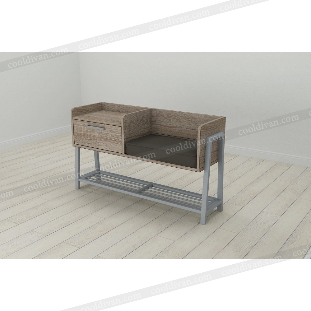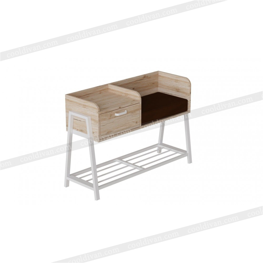 Міцний металевий каркас з матовим покриттям доступний у трьох класичних кольорах: білий, сірий і чорний. Він забезпечує високу стійкість конструкції та переносить навантаження до 90 кг, тож на банкетці зручно присісти, щоб взутись або перевдягнутися. У комплект входить м’яка подушка, яка додає комфорту та робить зону сидіння максимально приємною.