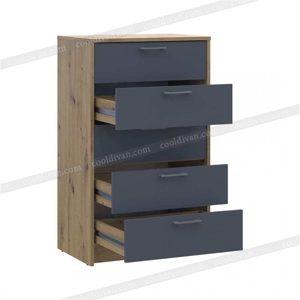 Завдяки компактній ширині, комод не займає багато місця, але його висота дозволяє розмістити п’ять функціональних відділень для зберігання.