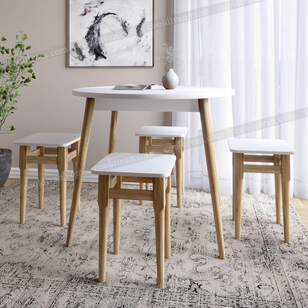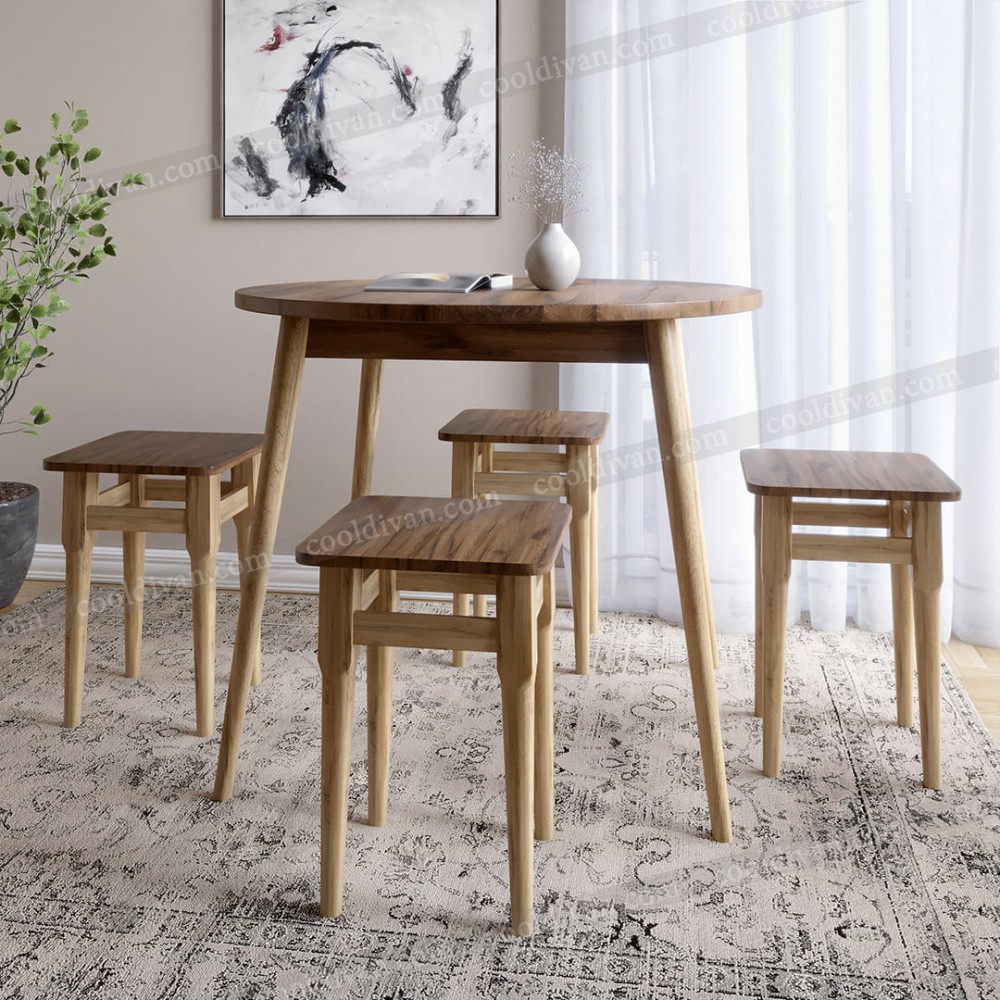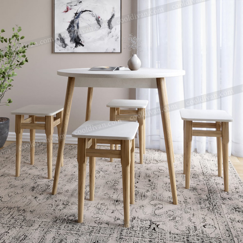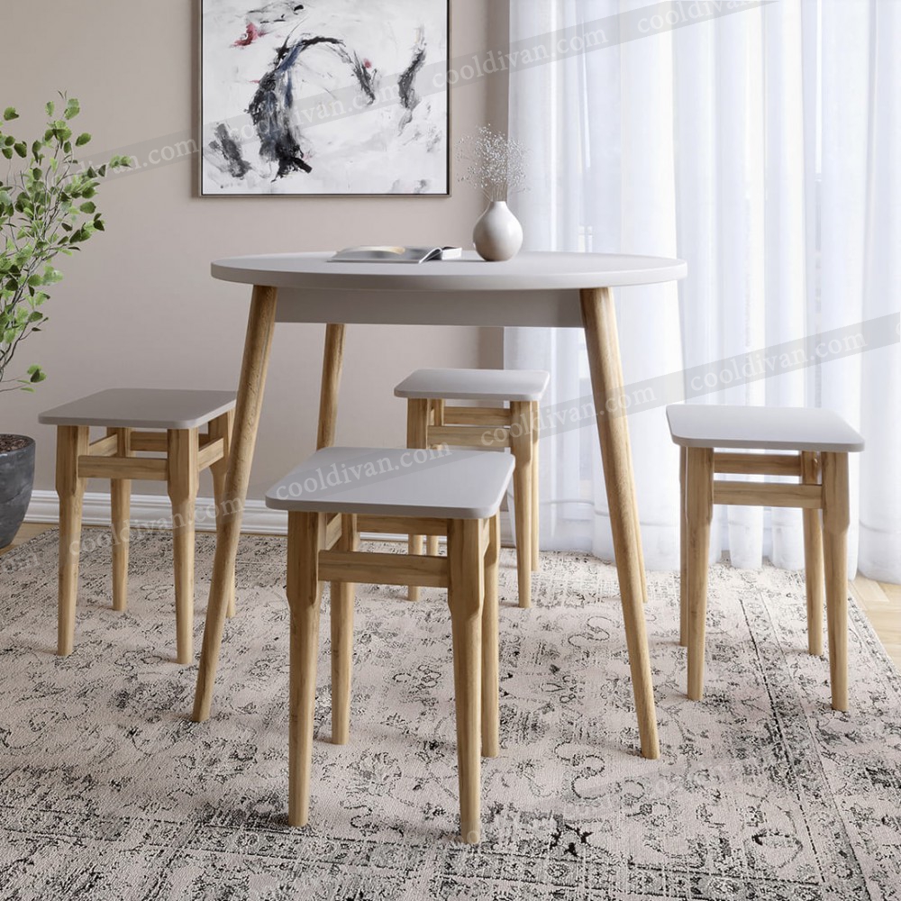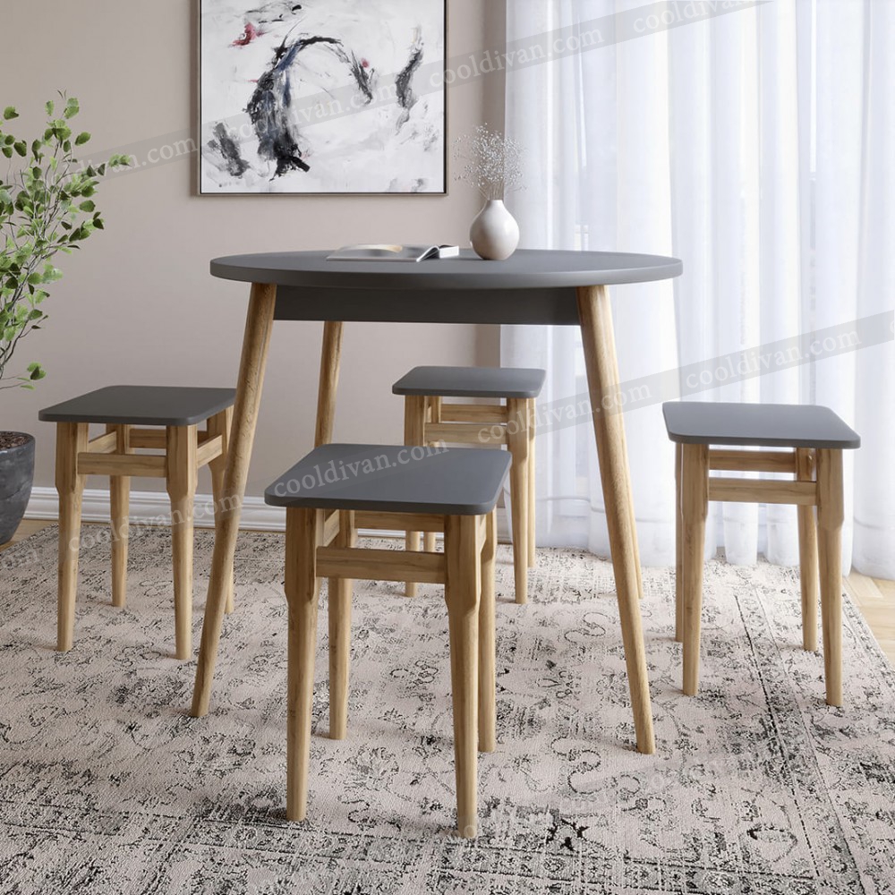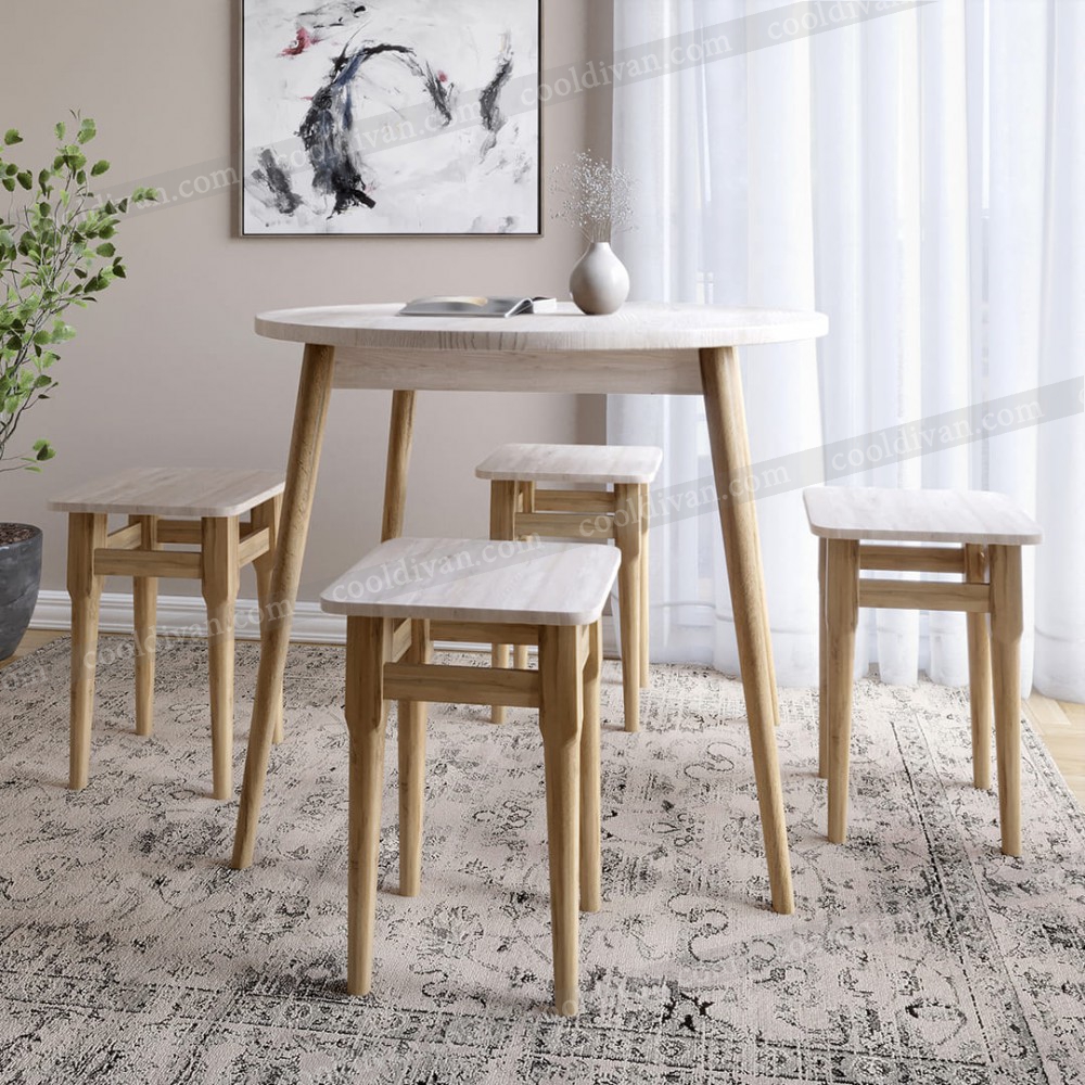 Комплект Ліма – це практичне рішення для невеликих кухонь та їдальних зон. У набір входить круглий стіл діаметром 90 см та 4 зручні табурети. Завдяки продуманим розмірам (висота столу 73 см, висота табурета 47 см, ширина та довжина табурета 33 см) комплект забезпечує комфорт під час щоденного використання.