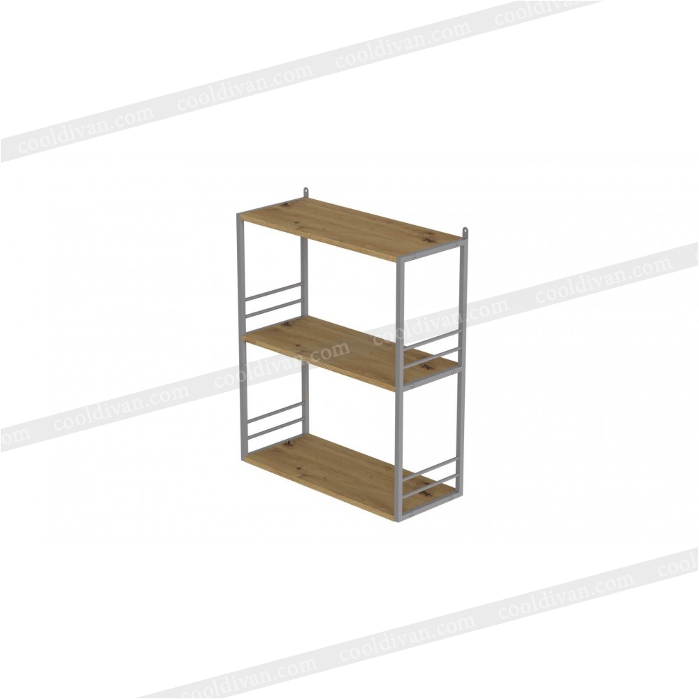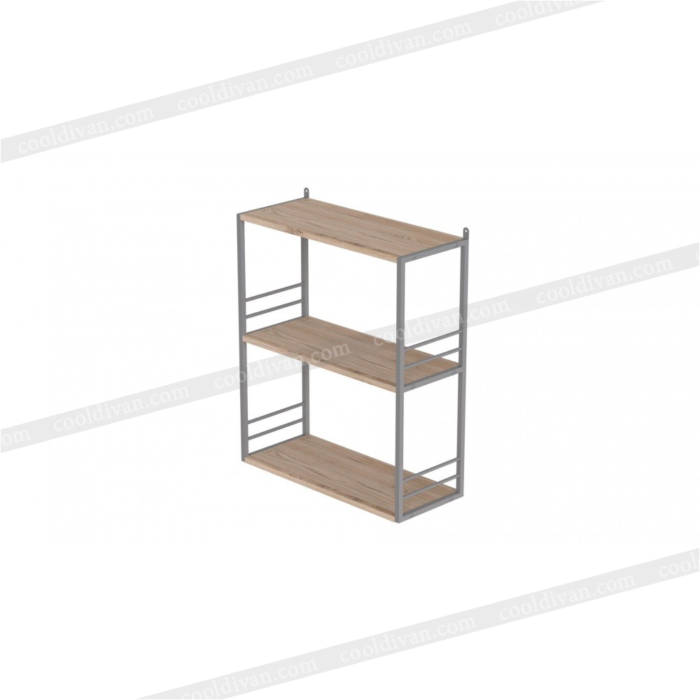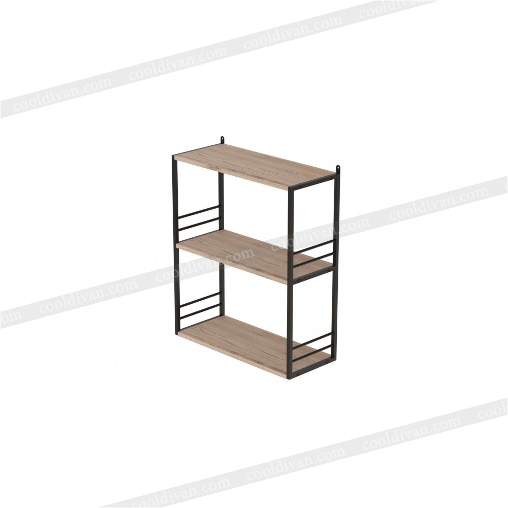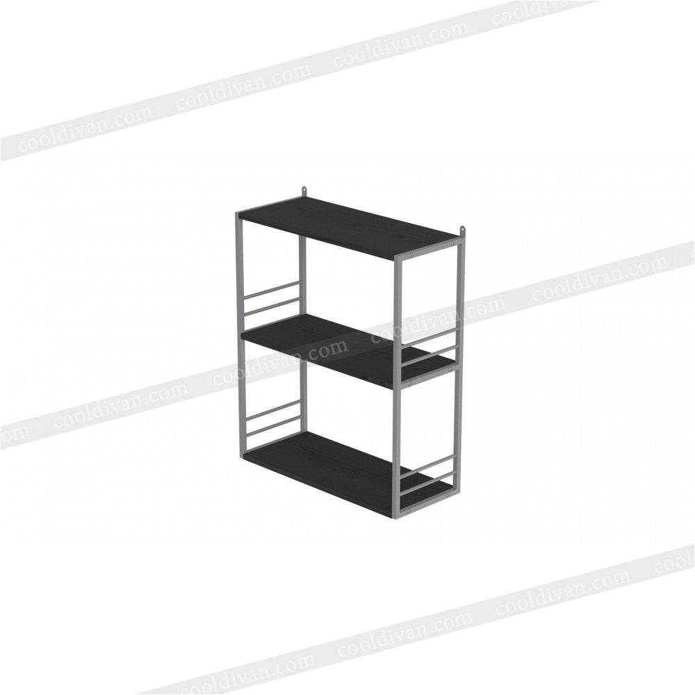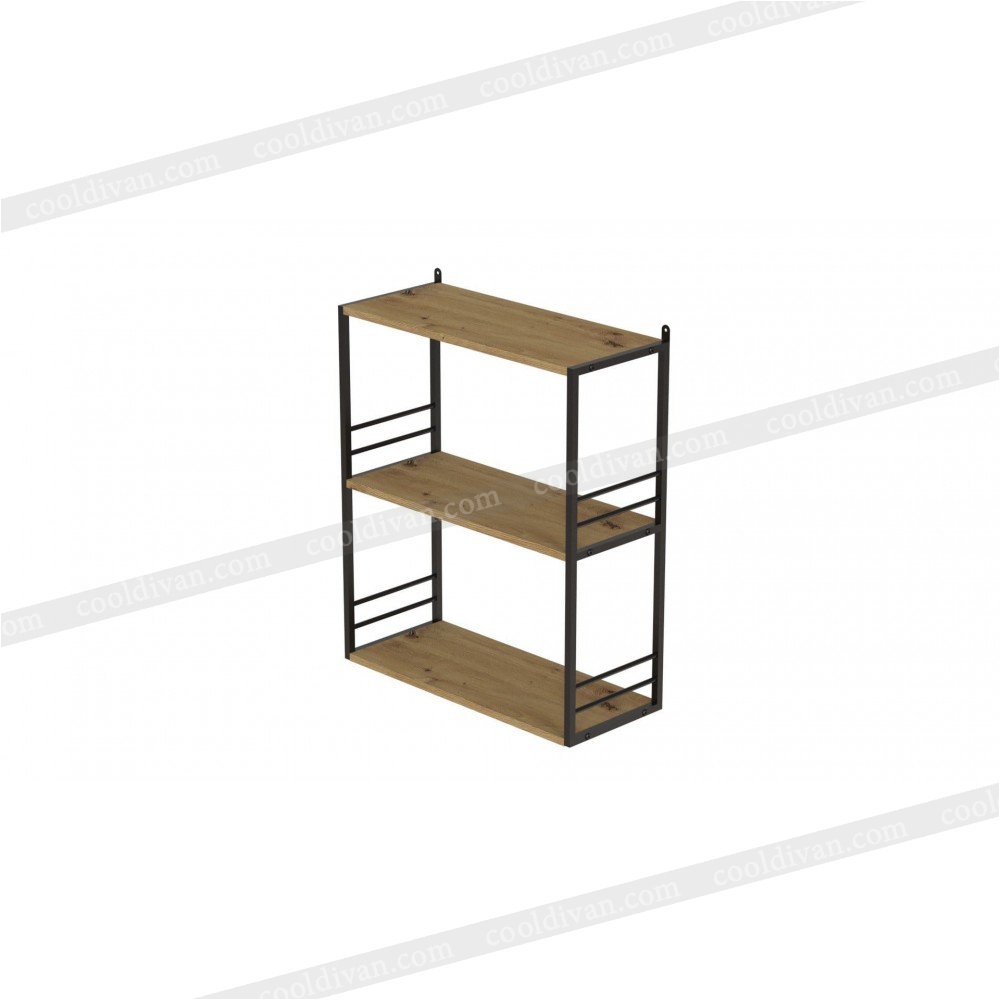 Конструкція моделі складається з трьох містких полиць, об’єднаних металевими прямокутними боковими деталями. Такий каркас забезпечує стабільність, високу надійність та стильний зовнішній вигляд. Полиця здатна витримувати навантаження до 15 кг, що дозволяє безпечно зберігати навіть важкі книги чи габаритні декорації.