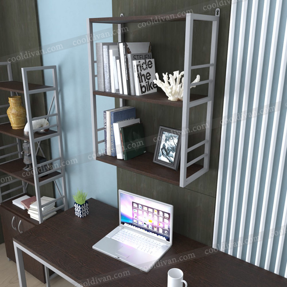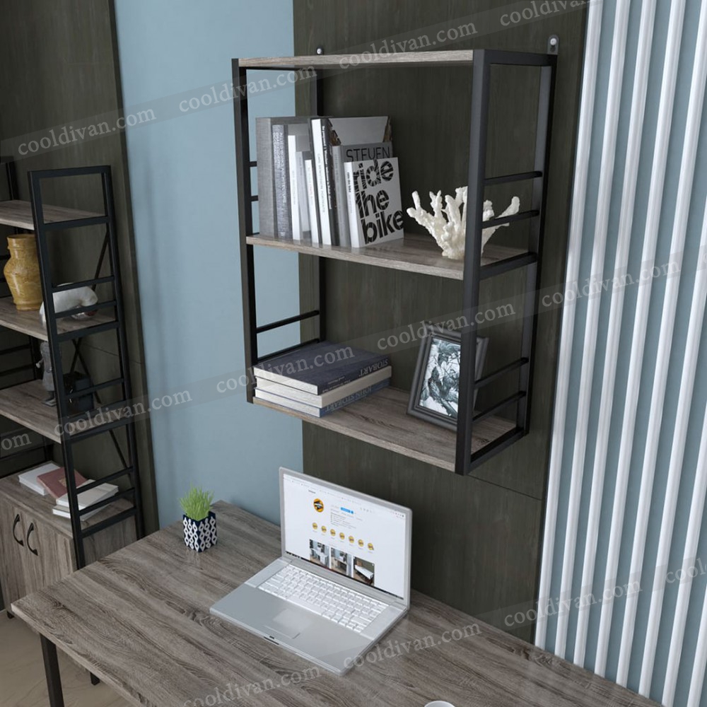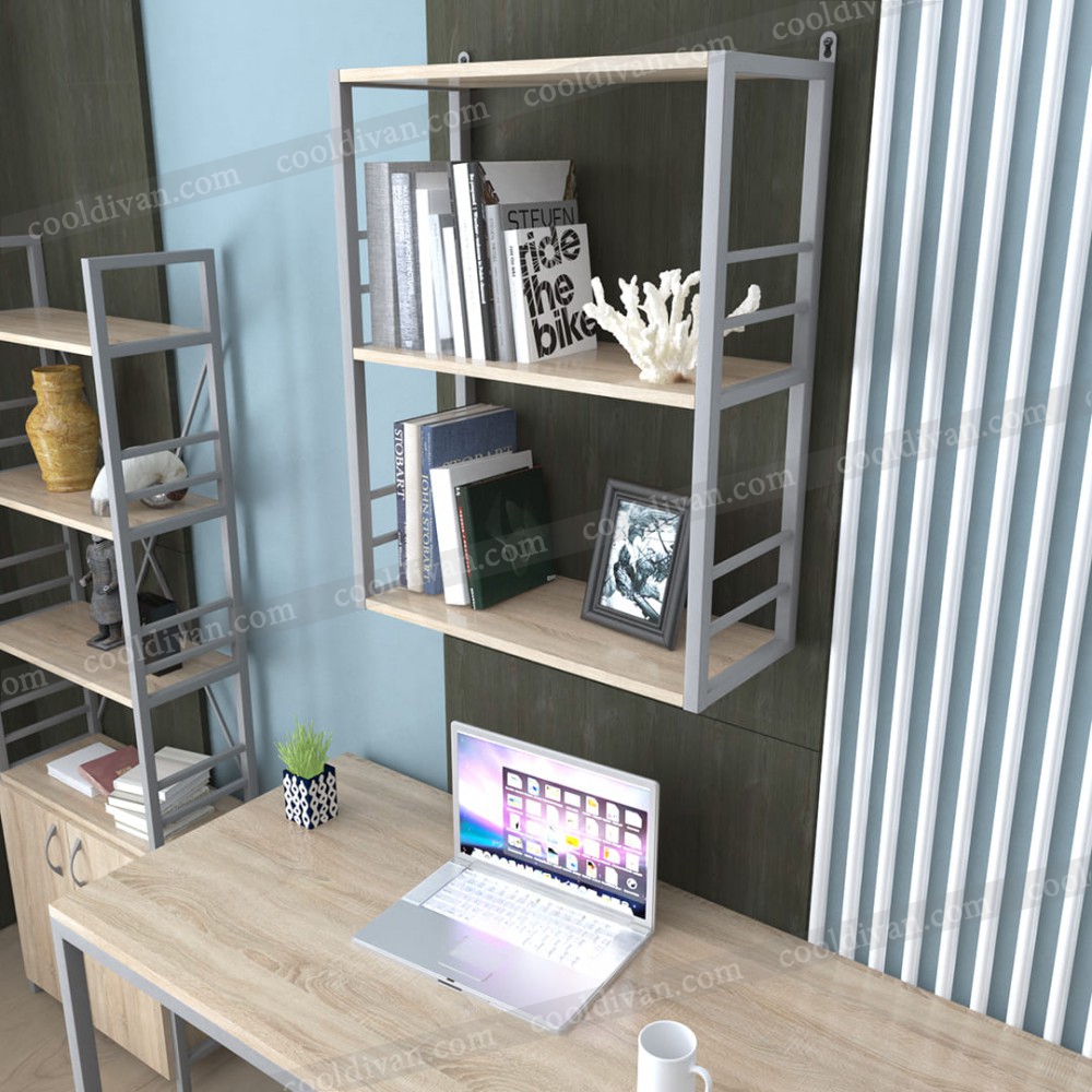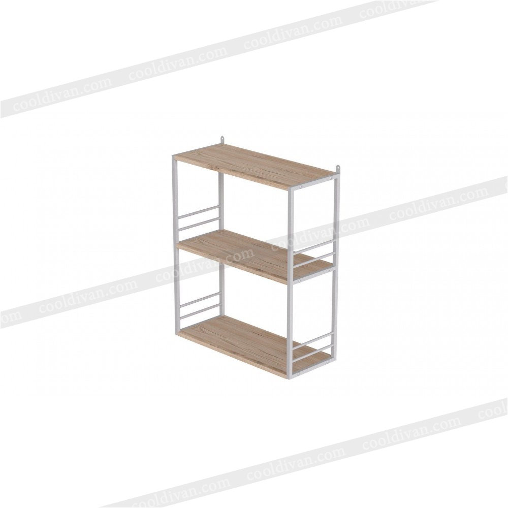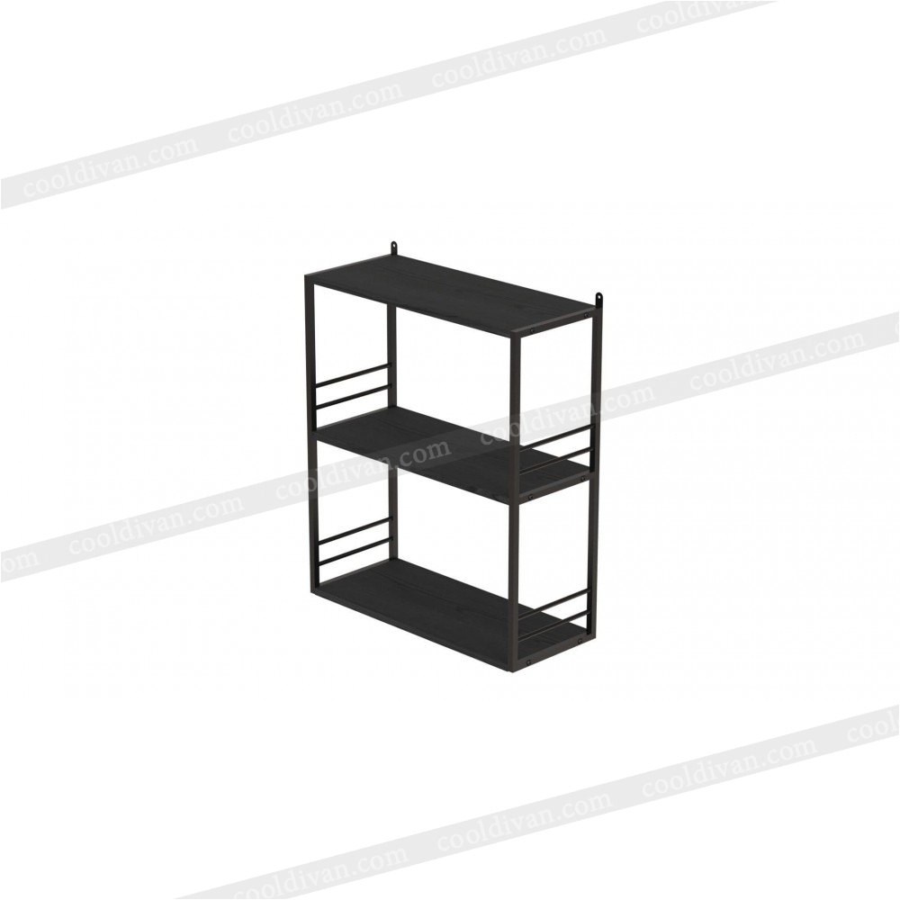 Конструкція моделі складається з трьох містких полиць, об’єднаних металевими прямокутними боковими деталями. Такий каркас забезпечує стабільність, високу надійність та стильний зовнішній вигляд. Полиця здатна витримувати навантаження до 15 кг, що дозволяє безпечно зберігати навіть важкі книги чи габаритні декорації.