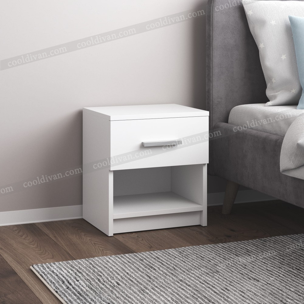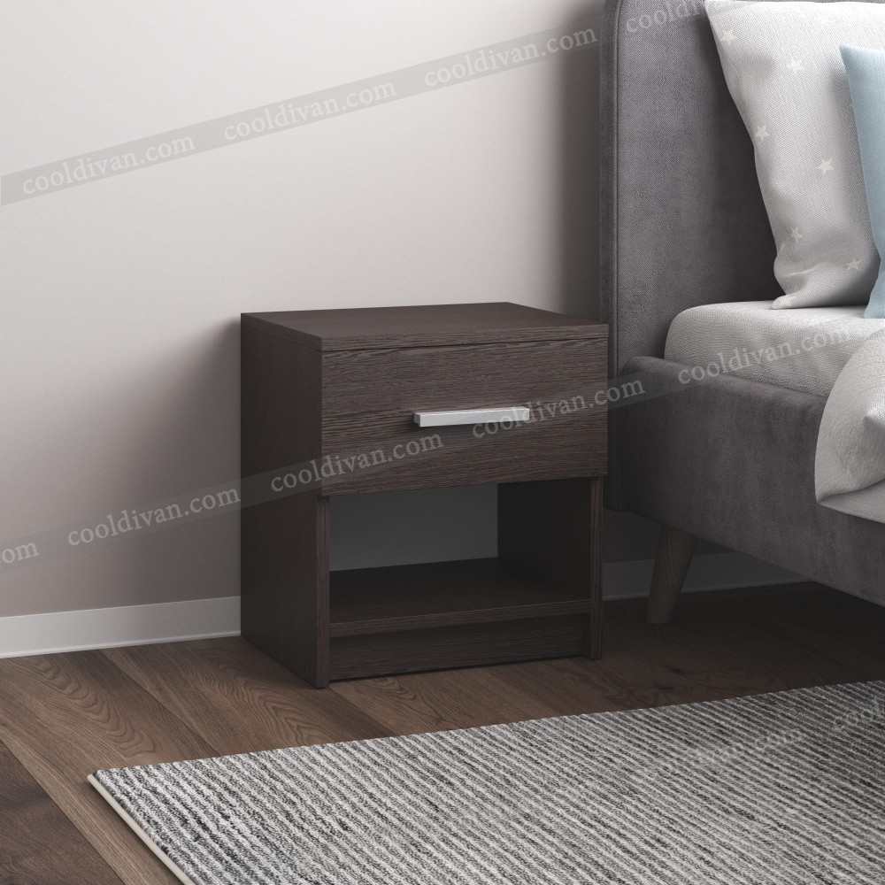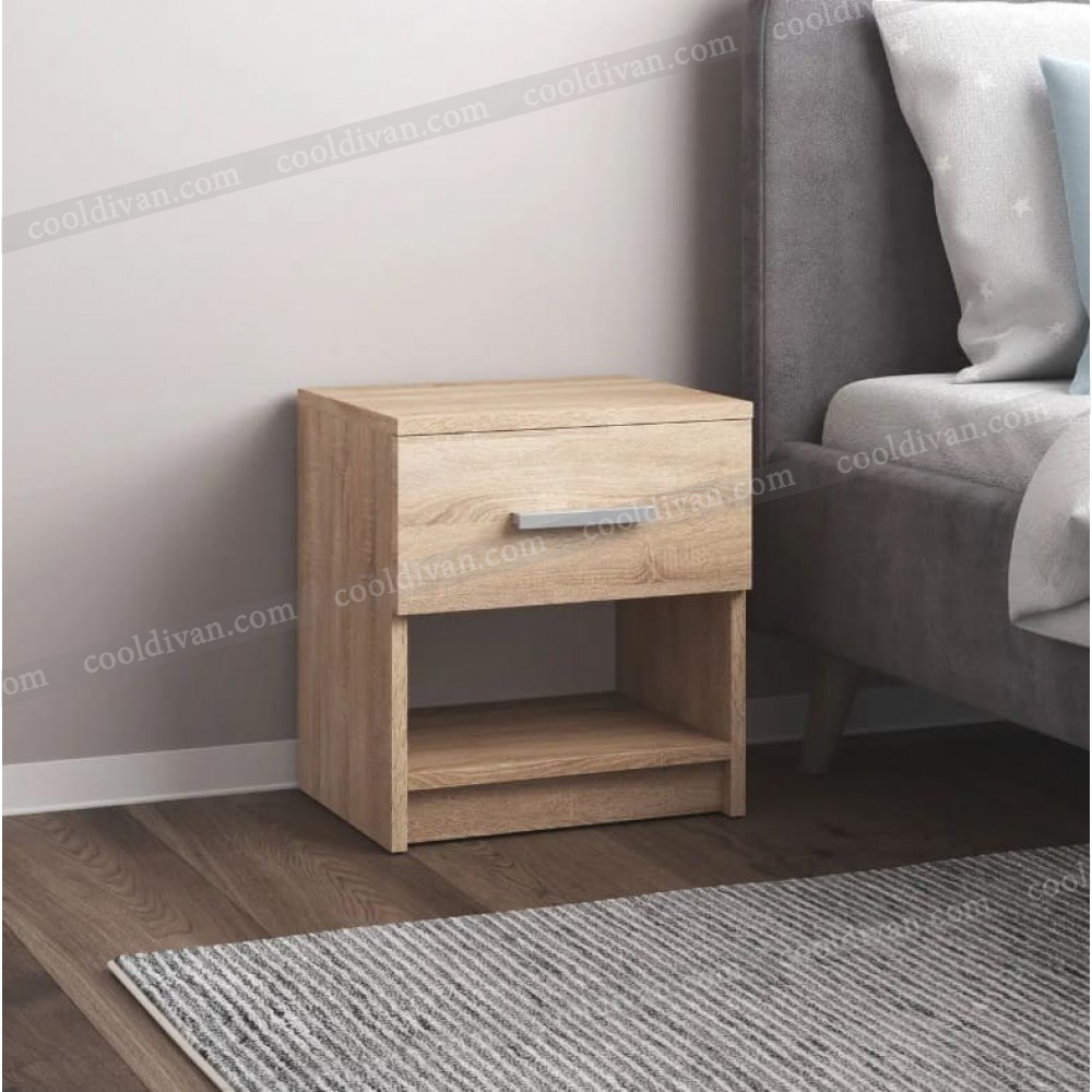Завдяки збалансованим розмірам (ширина – 39 см, висота – 41 см, глибина – 30 см), модель легко розміщується навіть у невеликих спальнях або гостьових кімнатах. Верхня висувна шухляда плавно відкривається, забезпечуючи зручний доступ до необхідних речей, а нижня відкрита полиця ідеально підходить для журналів, декору чи інших предметів повсякденного використання.