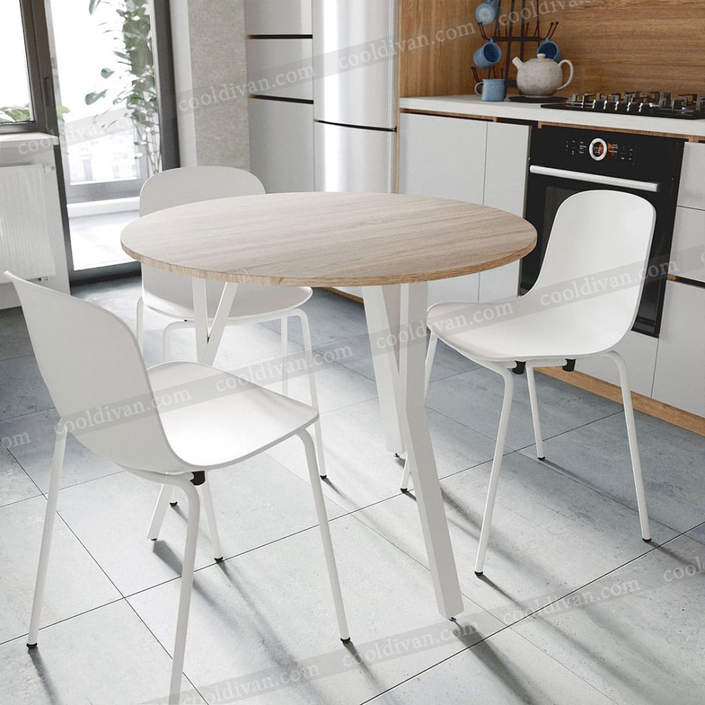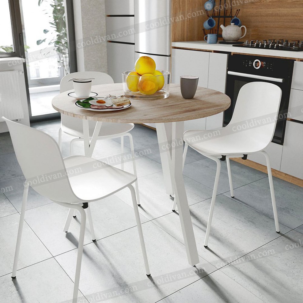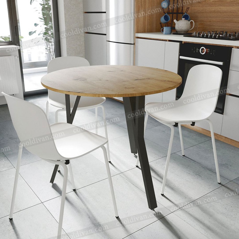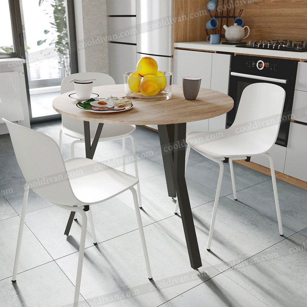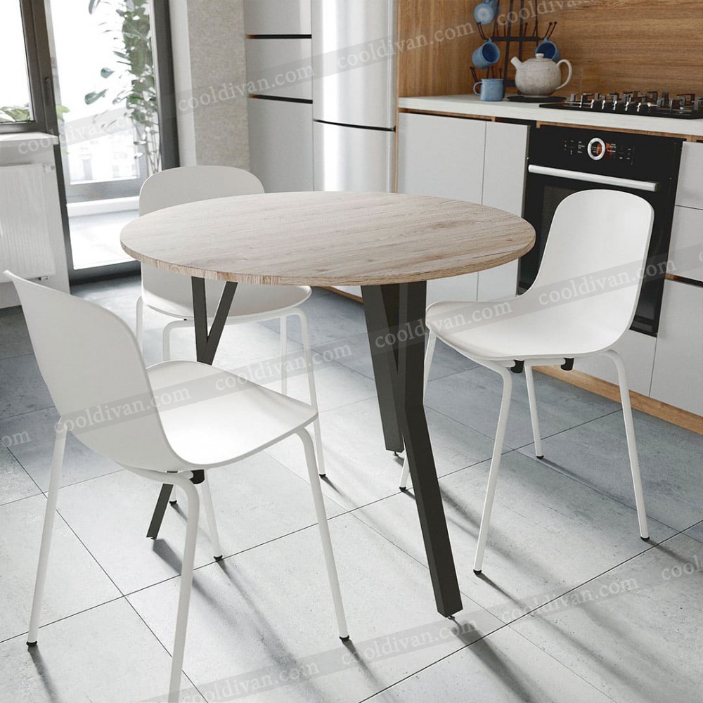 Круглый кухонный стол VOK-D082 – современный и практичный выбор для вашей кухни или столовой. Благодаря диаметру 90 см он компактен, но одновременно удобен для 3-4 человек. Высота 75 см соответствует стандарту, что обеспечивает комфорт в повседневном использовании
