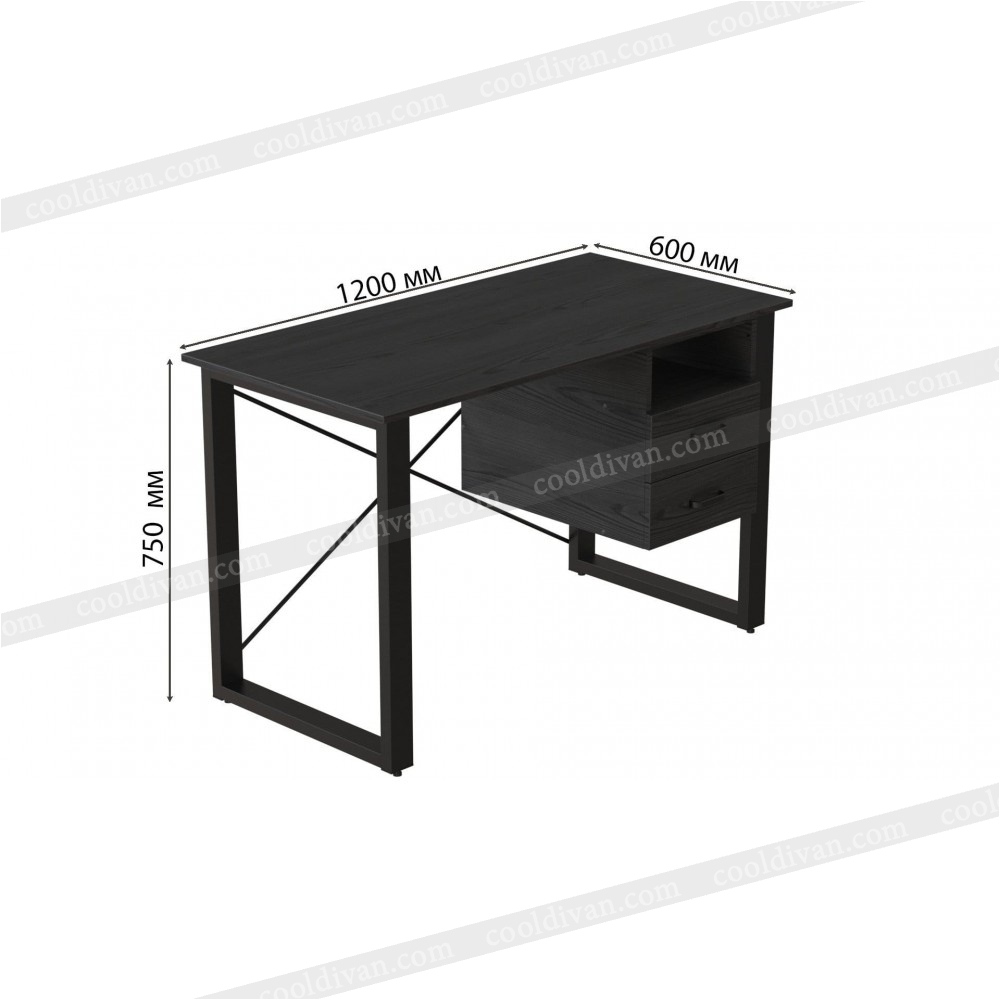 Главное преимущество этой модели — два вместительных выдвижных ящика с телескопическими направляющими и открытая ниша над ними. Это позволяет удобно организовать рабочее пространство: держать под рукой нужные документы и аксессуары. По желанию модуль с ящиками можно установить справа или слева, что делает стіл универсальным.