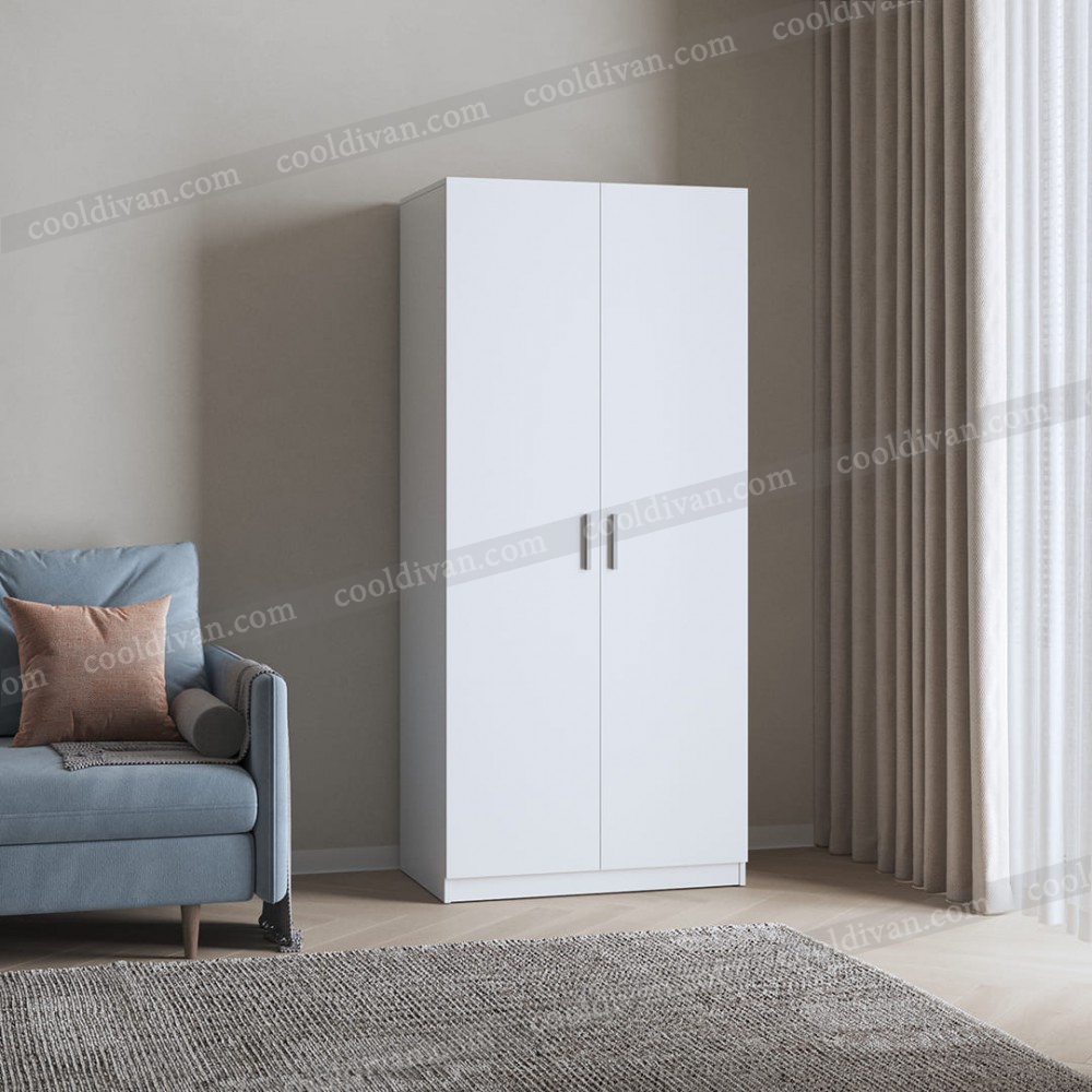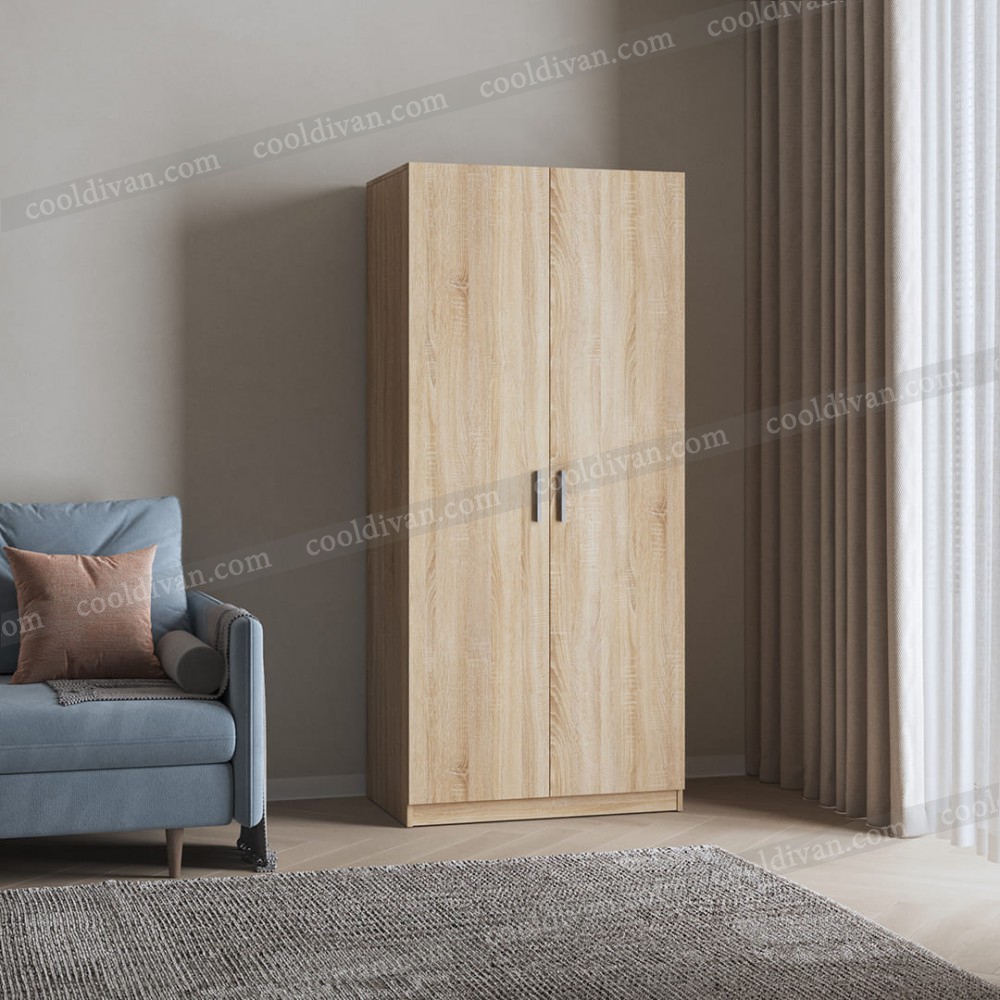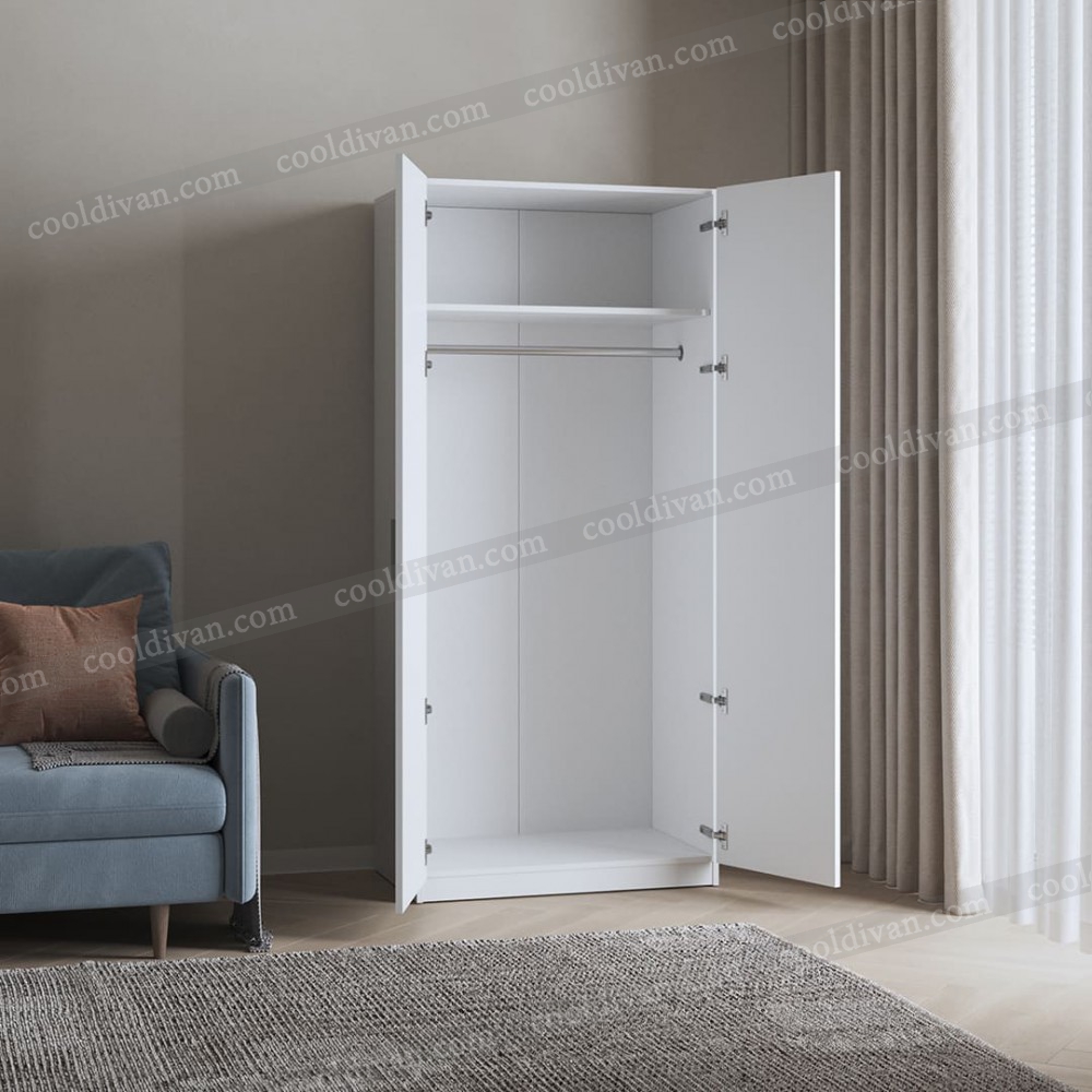 Габаритні розміри шафи: ширина – 80 см, висота – 181 см, глибина – 50 см. Усередині розташована зручна штанга для вішалок, на яку легко поміщаються куртки, пальта, сукні чи костюми. Над штангою передбачена верхня полиця, де зручно зберігати головні убори, сумки, сезонний одяг або постільну білизну. Такий формат розподілу простору забезпечує порядок і швидкий доступ до речей.