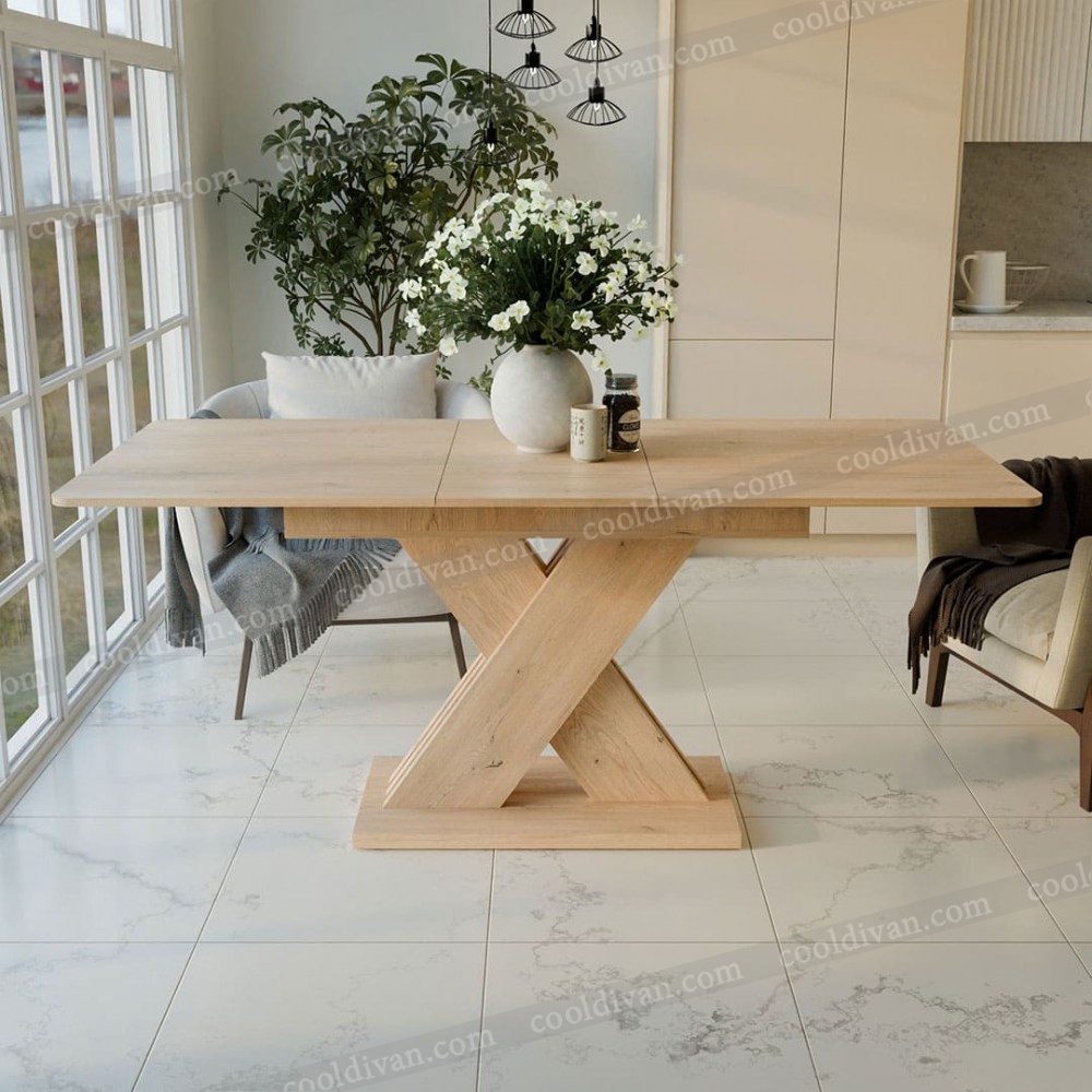 Головною особливістю моделі «Віто» є її масивна центральна опора. Замість традиційних чотирьох ніжок, стіл тримається на ефектній стійці, що нагадує форми «X» або «V». Така конструкція не лише виглядає надзвичайно стильно, а й додає практичності: сидіти за таким столом зручніше, оскільки ніжки не заважають колінам, а стільці можна засунути максимально глибоко.