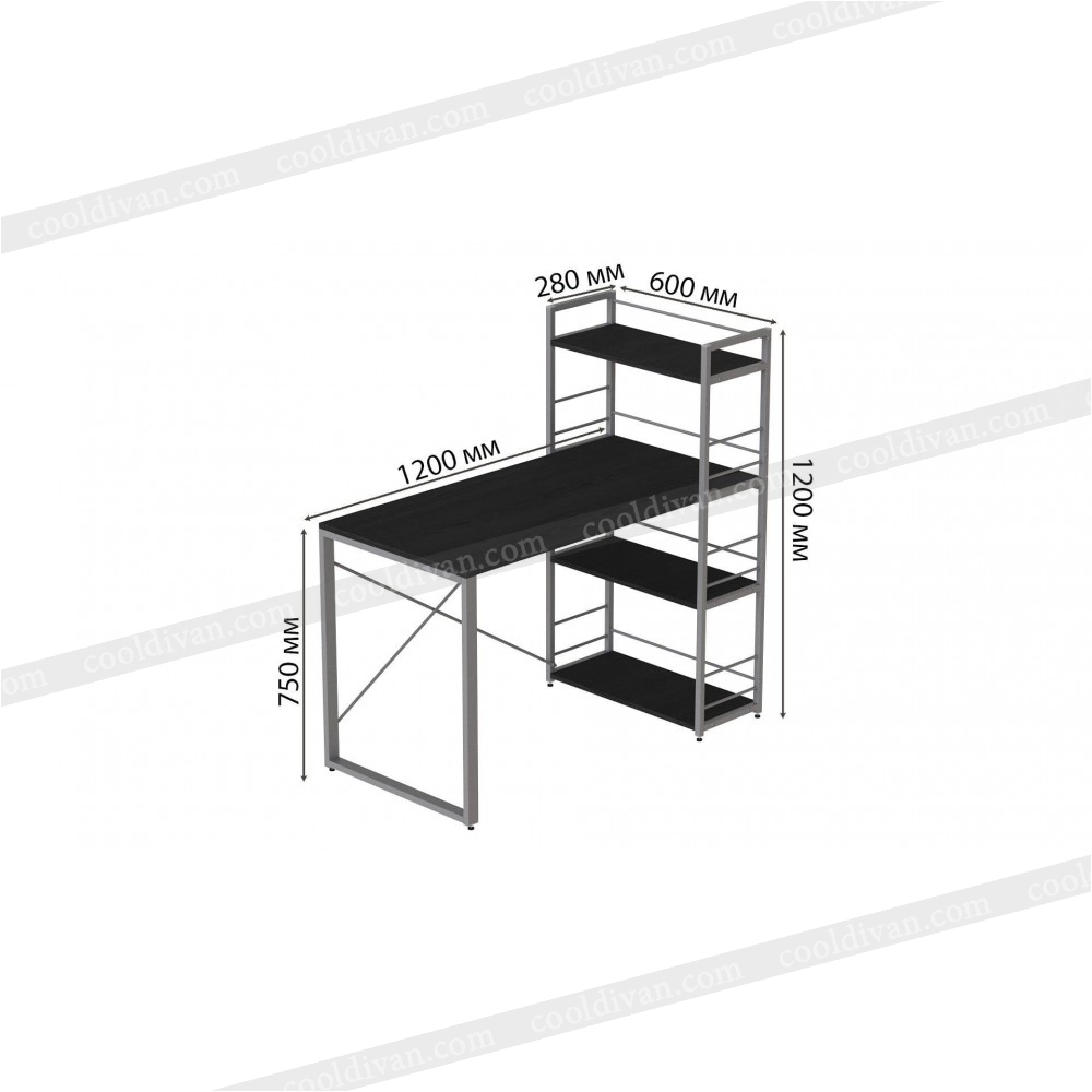- Матеріали: стільниця та полички – ЛДСП, каркас – метал.