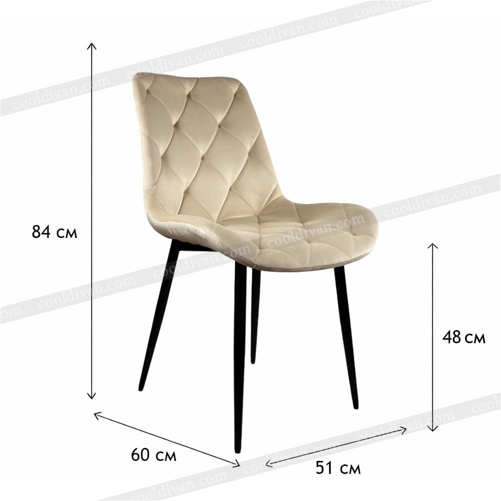 - Розміри: ширина — 51 см, глибина — 60 см, висота — 84 см. Оптимальні параметри для комфортного сидіння та підтримки спини.